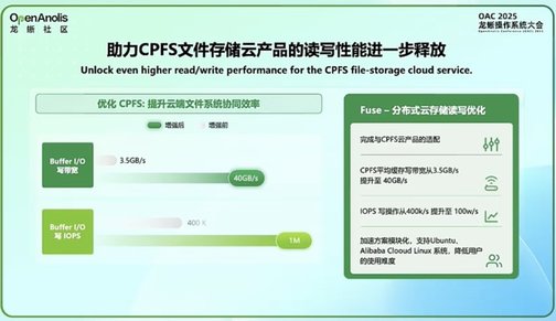 例如,龙蜥操作系统(OpenAnolis)给出的方案是全链路的“疏通”:针对 CPFS(并行文件系统),龙蜥在 OS 层面进行了深度适配。缓存写场景下的性能可以直接提升 10 倍。这意味着模型训练中的 Checkpoint 保存时间大幅缩短:以前需要几小时,现在几十分钟就能搞定。