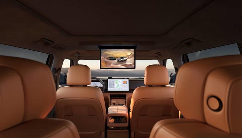 具体来看,极石01长什么样,极石ADAMAS就长什么样,都是经典的“方盒子”造型。但需要注意的是,该车型并未采用传统硬派越野车常见的非承载式车身结构,在定位上更接近城市SUV与户外功能的融合。车身尺寸,极石ADAMAS的长宽高分别为5050(含备胎5298)/1985/1856mm,轴距为3010mm,继续提供六座和七座两种布局。但要吐槽的是,极石ADAMAS的第三排座椅完全没有舒适性可言,就跟坐小板凳似的,不仅低矮,腿部还没支撑性,这个设计和特斯拉Model Y L的第三排有得一拼。另外,极石ADAMAS还新增一款“流沙金”外观配色。