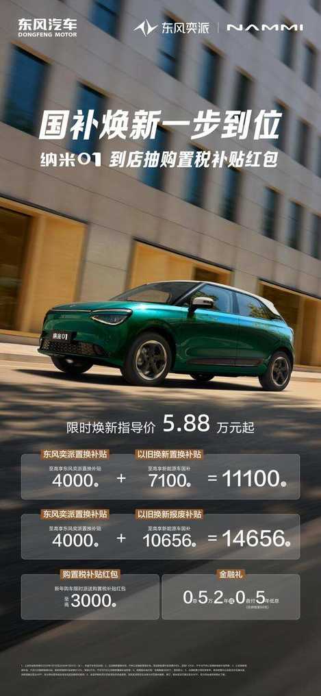 “大美智能国民车”纳米01在2025年同样持续热销,凭借极具个性的潮流气质,成为用户精致的生活搭子,累计销量已突破11万辆。为了让更多追求潮流与实用的用户享受到政策红利,2026年,纳米01限时焕新指导价5.88万元起,更有国补至高10656元+厂家补贴至高4000元+限时购置税补贴红包至高3000元,三重豪礼叠加,助力这款潮流单品持续为更多用户带来精致生活。