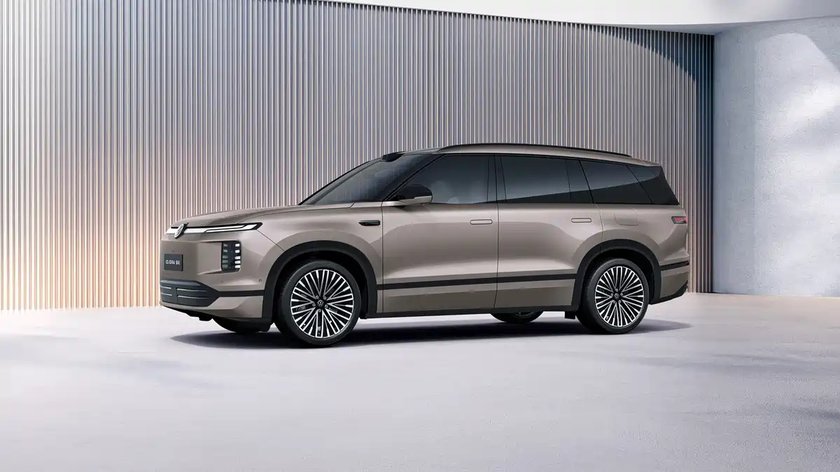 照例我们先看外观,新车采用了全新的设计语言,给人的新鲜感很强。具体来看,由于这是一台增程车,所以车头不用过分在意风阻而采用低趴的设计,因此高耸的车头下给人带来了非常霸气的视觉效果。贯穿式LED灯组+发光LOGO的组合,一眼就能看出这是一台新能源车。两侧则是左右大灯,横杠式的设计颇为出彩,当然也提升了车头的层次感。车头自然式封闭式设计,下包围处则为搭配了贯穿式的多边形进气口+散热开口,并配有主动格栅功能。