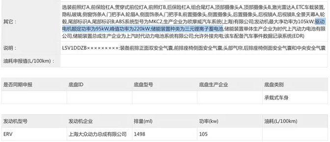动力方面,新车将搭载一台代号为EA211的1.5T发动机作为增程器,结合申报信息看,这次官方申报了三款车型,分别是: