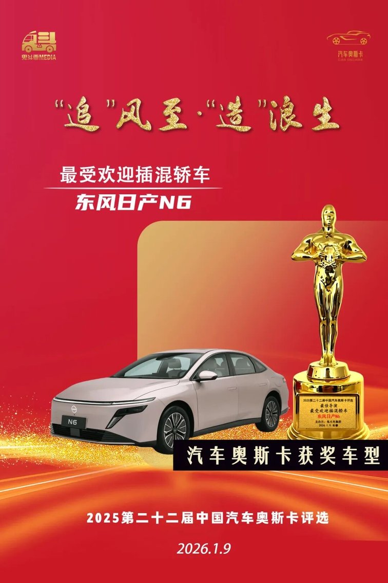 获奖理由:东风日产N6凭借着王牌产品硬实力、越级智能软实力、央企合资高品质三大优势,重新定义插混轿车新标准。