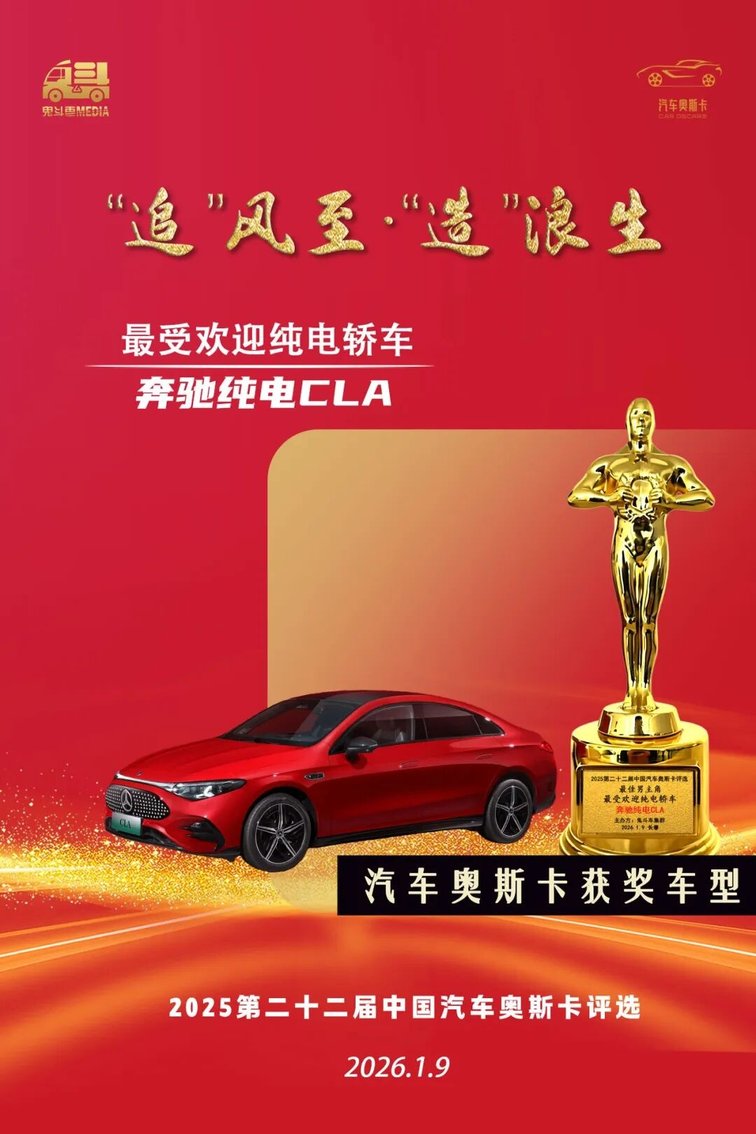 获奖理由:全新奔驰纯电CLA是有史以来最高效、最智能的奔驰量产车,其10.9千瓦时/100公里的电耗、AI赋能的智能座舱等,树立同级标杆。
