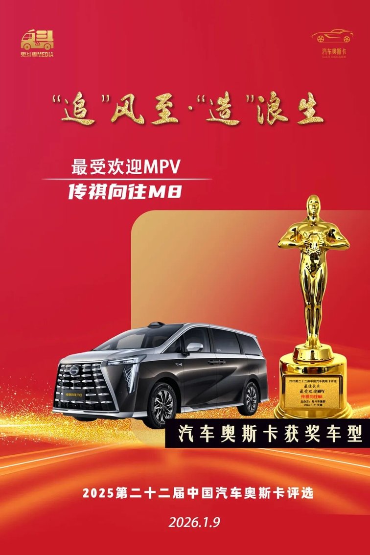 获奖理由:传祺向往M8以舒适驾乘、智能科技与周全安全的核心优势定义智能MPV新标准,其背后更有48万传祺M8车主长久信赖铸就的口碑。