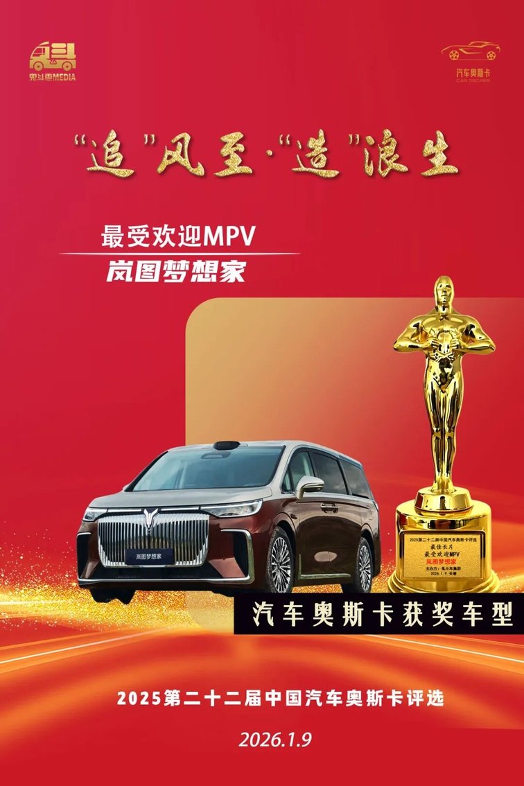 获奖理由:岚图梦想家以全域豪华重新定义高端MPV,实现销量与口碑的双重领跑。数字背后是用户的信任,口碑之上是价值的阶梯。
