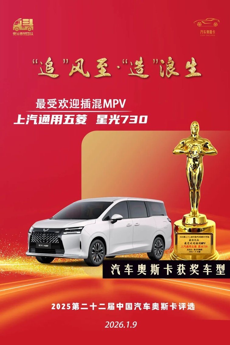 获奖理由:上汽通用五菱 星光730精准切中广大家庭用户需求,以一车三动力为核心,标配50+越级配置,上市49天销量破2万,登顶15万内MPV销冠。