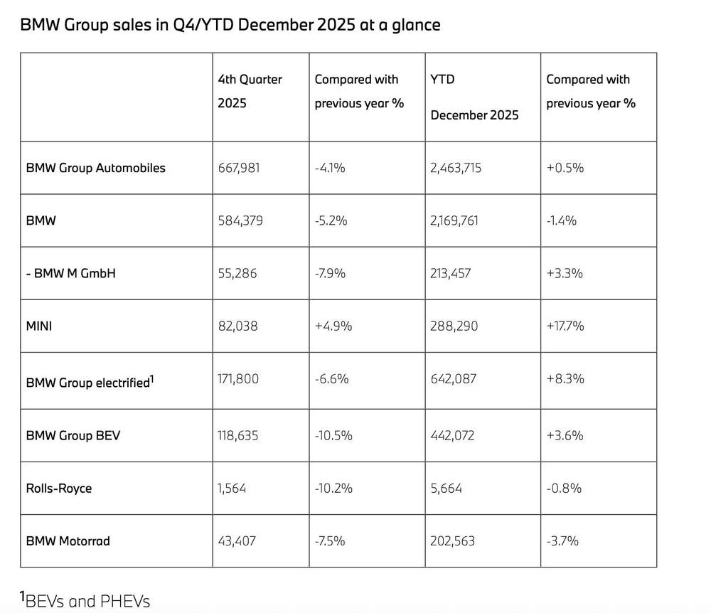 分品牌来看,虽然核心的BMW品牌与超豪华的劳斯莱斯均同比小幅下降——其中BMW品牌全年交付2169761辆、同比下降1.4%,劳斯莱斯5664辆、同比降0.8%——但MINI品牌表现强劲,达288290辆,同比大增17.7%,成为集团全年增长主力。与此同时,M高性能子品牌交付213457辆,同比增长3.3%,创历史新高,抵消了BMW主品牌的下滑压力。