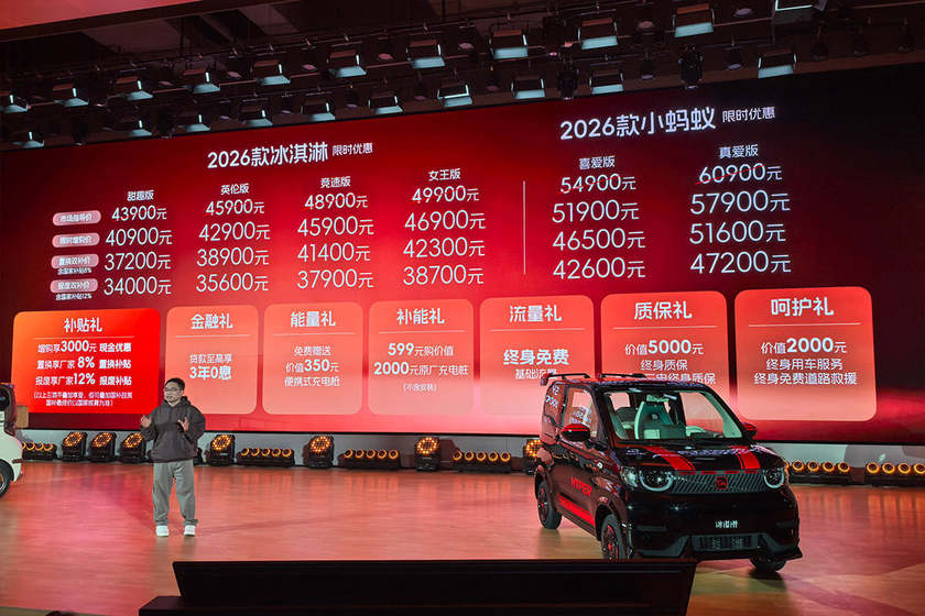 1月10日,奇瑞汽车“潮有料开麦夜”暨2026款全新冰淇淋上市发布会在安徽芜湖举行,四款车型同步入市,甜趣版3.4万元起、英伦版3.56万元起、竞速版3.79万元起、女王版3.87万元起;全新小蚂蚁同步推出271km续航版本,喜爱版4.26万元起、真爱版4.72万元起,以极具竞争力的价格矩阵加码A00级市场。