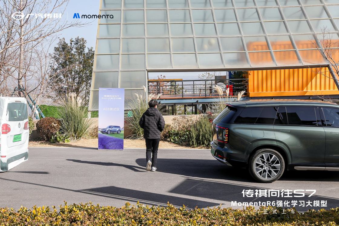 试驾环节的实测体验,让传祺向往 S7 Momenta R6 大模型的实力不再局限于展示牌上的文字。活动专门设置了 AEB 测试区,测试区入口处的展示牌清晰标注着 “AEB 测试区 传祺向往 S7 MomentaR6 强化学习大模型”,将测试场景与核心技术直接绑定,让媒体们直观了解测试的技术依托。
