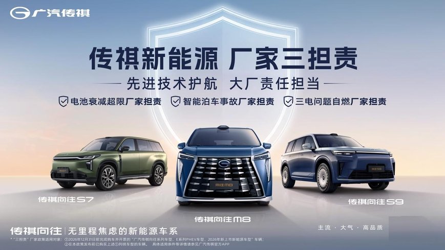 值得一提的是,广汽传祺还为消费者送上了实打实的福利:17.98 万的起售价,搭配 6000 元超级置换补贴,性价比优势显著。更令人安心的 “三担责” 服务承诺 —— 电池衰减超限、智能泊车事故、三电问题自燃均由厂家担责,尽显大厂的责任与担当,彻底打消了用户的购车顾虑。