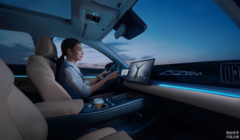 座舱内的智能化体验同样丰富。新增的一体式智能冷暖冰箱、前排座椅通风加热、感触式广角全景天窗、31 色环抱式情景氛围灯,结合15.6寸中控Pad与沉浸式音乐厅级音响,共同营造出高品质的舒适氛围。整车支持OTA远程升级,确保这些智能舒适体验常用常新。