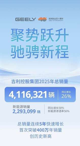 连续五年快速增长!全球“一个吉利”2025年总销量411.6万辆