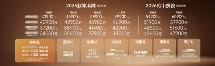 1月10日晚,奇瑞汽车在安徽芜湖凤鸣研创中心成功举行“潮有料开麦夜”暨2026款全新冰淇淋上市发布会。在脱口秀演员Echo与她的朋友们带来的轻松笑谈中,26款全新奇瑞冰淇淋正式上市,宣告“两门高定出行潮品”正式进入市场。共推出四个版本车型,女王版售价38700元起、竞速版售价37900元起、英伦版售价35600元起、甜趣版售价34000元起。