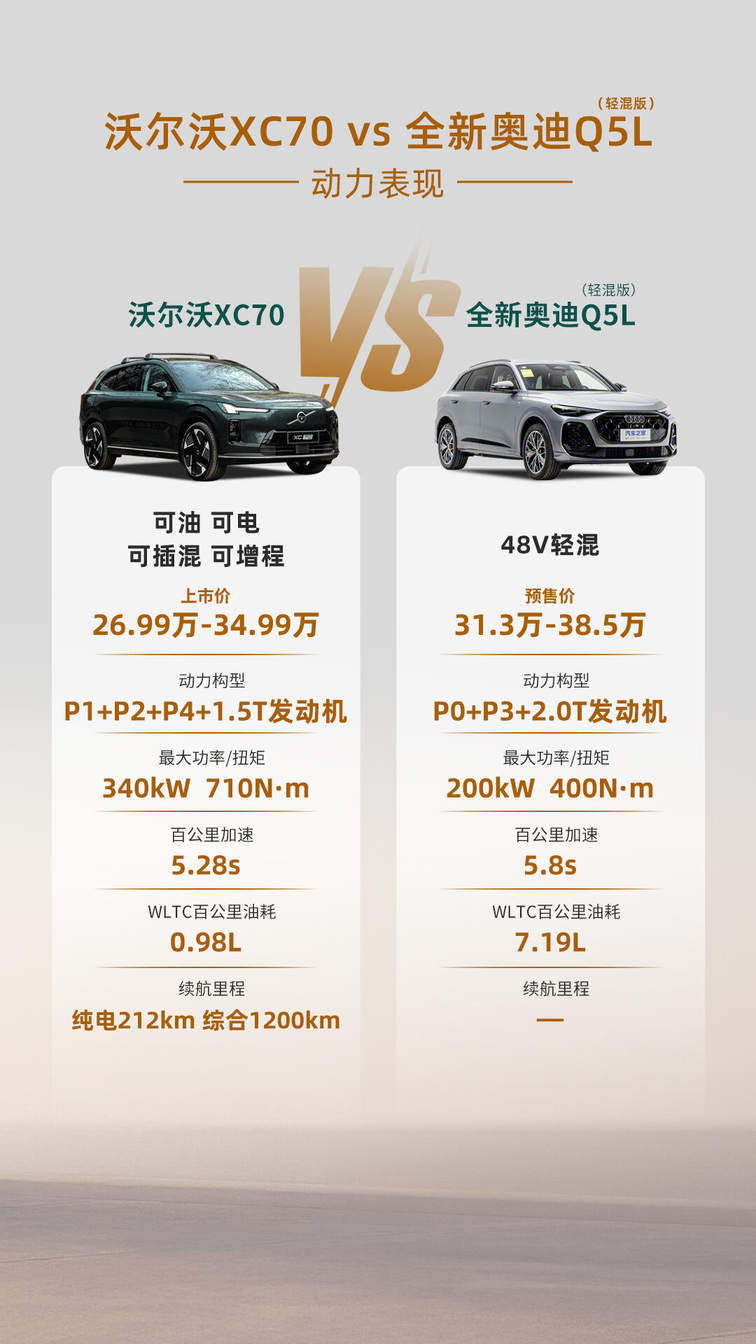 2026年初,奥迪品牌迎来关键一战,旗下支柱车型全新Q5L即将在1月15日正式上市,31.3万元起的预售价锁定了不少消费者的目光。不过现在的豪华SUV市场,强者如云,比如上市三个多月累计销量超1.4万辆的全新XC70,就会是全新Q5L的有力竞争对手。而且全新Q5L再加3万元就能入手全新XC70顶配版,全新XC70还有1.4万元购置税补贴、3年3次免费保养等政策支持,市场热度可不低。