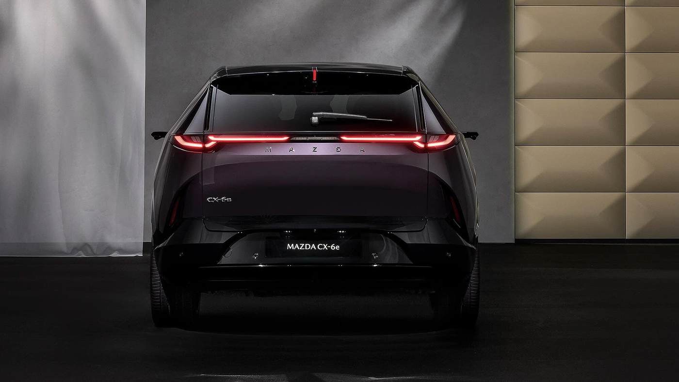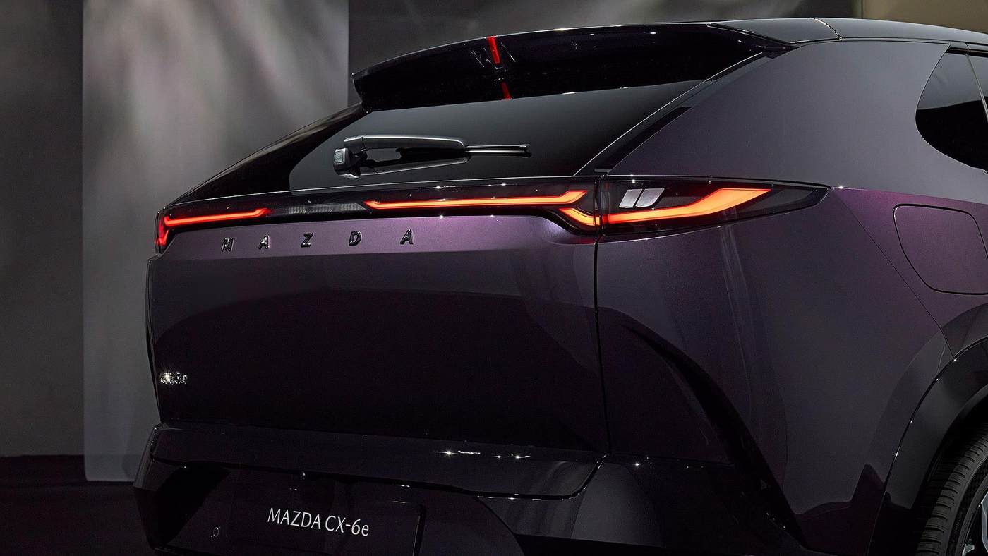 倾斜角度很大的后风挡上方有一个车顶扰流板,中央集成了高位车灯。仅在中部断开的贯穿式尾灯下方,还有一个马自达字标。