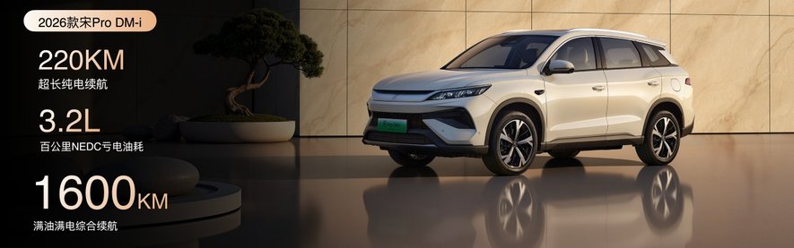 作为宋家族的旗舰SUV,2026款宋Pro DM-i在续航、智能与舒适上全面升级,让每一次出行都更从容自在。配备26.6度大电池后,纯电续航提升至220公里,足够满足一周通勤或周末出行,让用户体验到真正的纯电自由。即便长途驾车,结合第五代DM技术优化后的超低油耗,也能实现通勤纯电、长途一箱油的轻松出行模式,1600公里的综合续航为家庭旅行提供了充足的底气。
