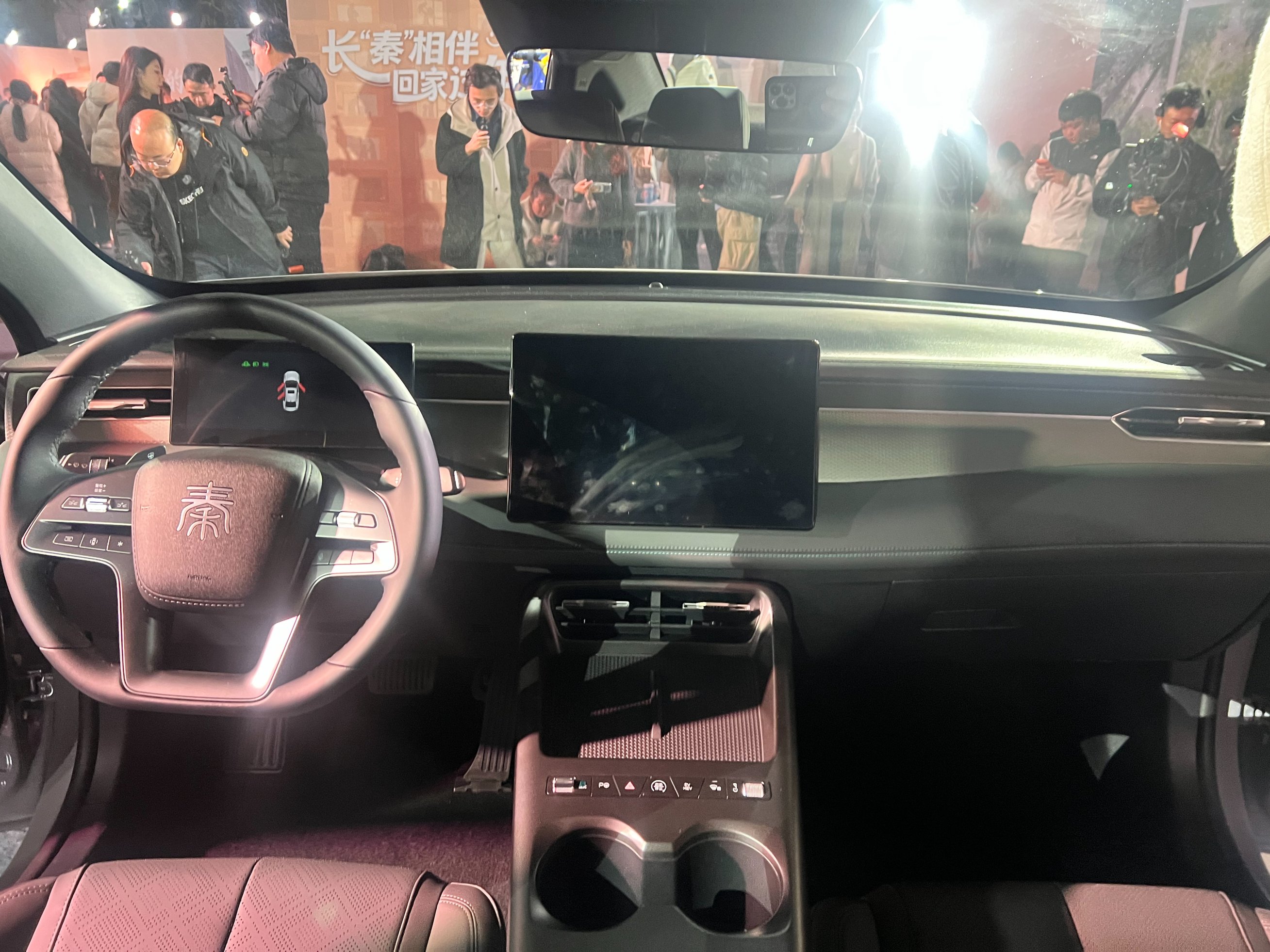 内饰延续款车型设计,中控台采用10.25英寸全液晶仪表盘,搭配带有旋转功能的15.6英寸悬浮式中控大屏的设计布局。配置方面做了提升,新增冷暖冰箱、抬头显示等配置。