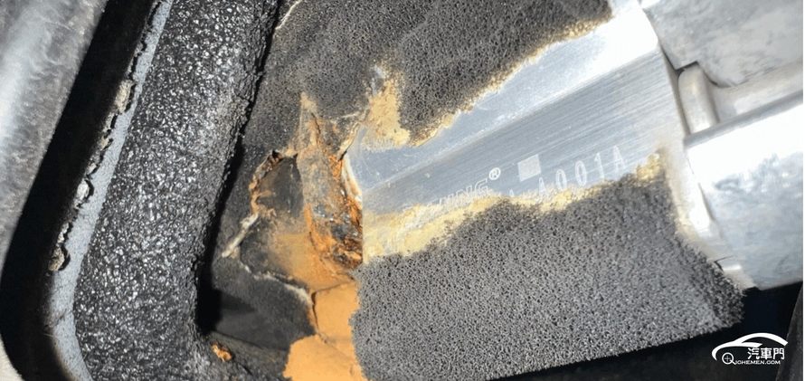 另一位2021款长安马自达3 昂克赛拉车主投诉称,车辆的空调冷气阀固定压板生锈,导致蒸发箱软管破损,氟液流出。从图片上可以看出,该部件外部包裹的海绵已被大面积腐蚀。该车主联系4S店解决问题,但4S店称该问题需要车主自费维修,且维修费用高达几千元。对此,该车主同样诉求厂家为其免费更换相关部件。