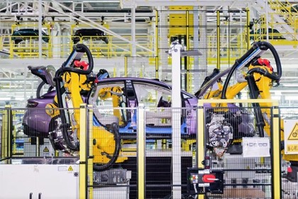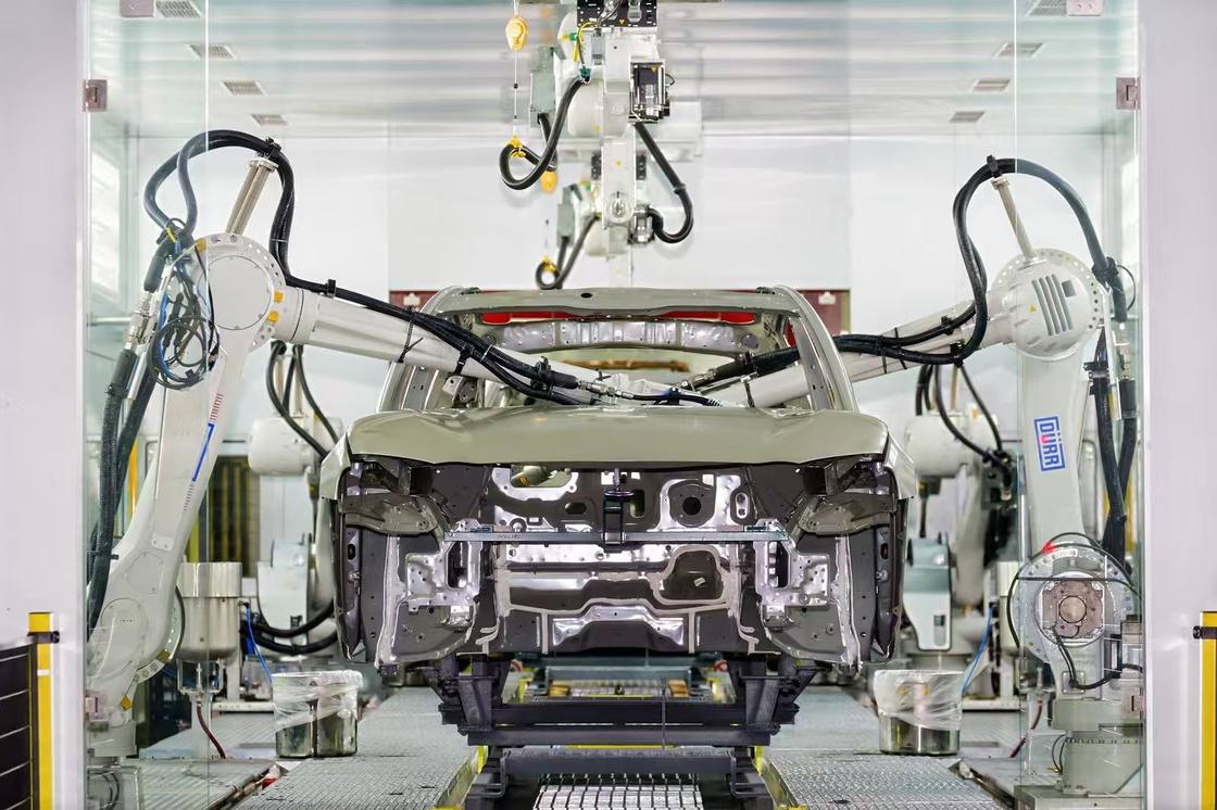 在冲压车间,只需要4秒就可将钢板压制成型,180秒内完成模具智能切换;焊接车间,14台机器人共同作业的情况下,可以在60秒以内完成超过100个焊点焊接,并同步进行AI视觉在线测量,确保车身“拼接的精准度。