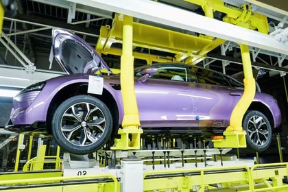 涂装车间因为需要处于完全无菌环境中,所以并未开放参观。但是公开资料显示,该车间共有160余台德国杜尔机器人,可对车身进行全自动喷涂,生产节拍同样达到1分钟/台,并同步进行700项以上的漆面AI检测。