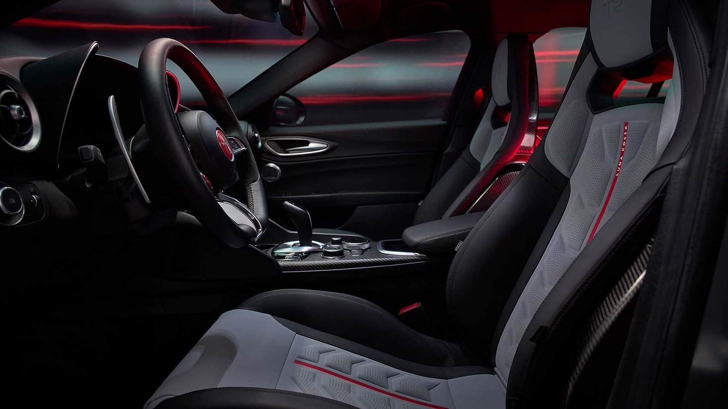 阿尔法·罗密欧Giulia Quadrifoglio Luna Rossa的亮点包括:一个以赛车专业知识开发的空气动力学套件,以及内饰中源自赛艇的灵感细节。