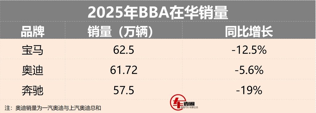 下跌是主旋律!2025年BBA销量:宝马再夺第一,奥迪超奔驰