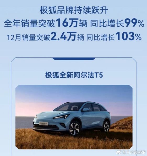 先来回顾一下极狐的成绩单:2024全年累计销量超8万台,同比增长170%。2025上半年销量5.5万辆,同比增长超过200%。去年下半年,极狐更是迎来爆发式增长:9月售出1.6万辆,10月-12月连续月销稳定在2万+。至此,2025全年,极狐销量超过了16万辆,同比增长99%,成为年度增长最快、势头最猛的品牌之一。