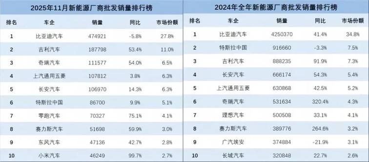 这样的成绩,其实有点意外。其一,2025年的中国车市,正处于贴身肉搏的复杂周期中,新能源赛道保持增长并不容易。其二,相比2024年,2025年奇瑞一口气超越了特斯拉等强劲对手,一年间实现三级跳,强势跻身“顶流”席位。