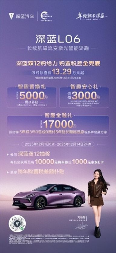 无论是极具吸引力的购车福利,还是在辅助驾驶、驾控、智能、安全、续航等方面的越级表现,深蓝L06都完美诠释了“同价高配、同配低价”的核心竞争力。国补红利窗口期已开启,新年福利限时放送!想要在新年入手高质价比智能轿跑的消费者,不妨抓住此次机遇,锁定深蓝L06,而且深蓝全系其它车型均参与本次活动,在1月10日至2月28日期间购车,均可享至高20000元国补红包、至高8000元 超级大置换补贴、至高10000元开年红包、至高5年0息的超强福利(详情咨询当地经销商),新年焕车,即刻冲刺!