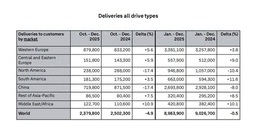 大众汽车集团日前发布了2025年全球销量数据——全年交付898万辆,保持稳健发展。