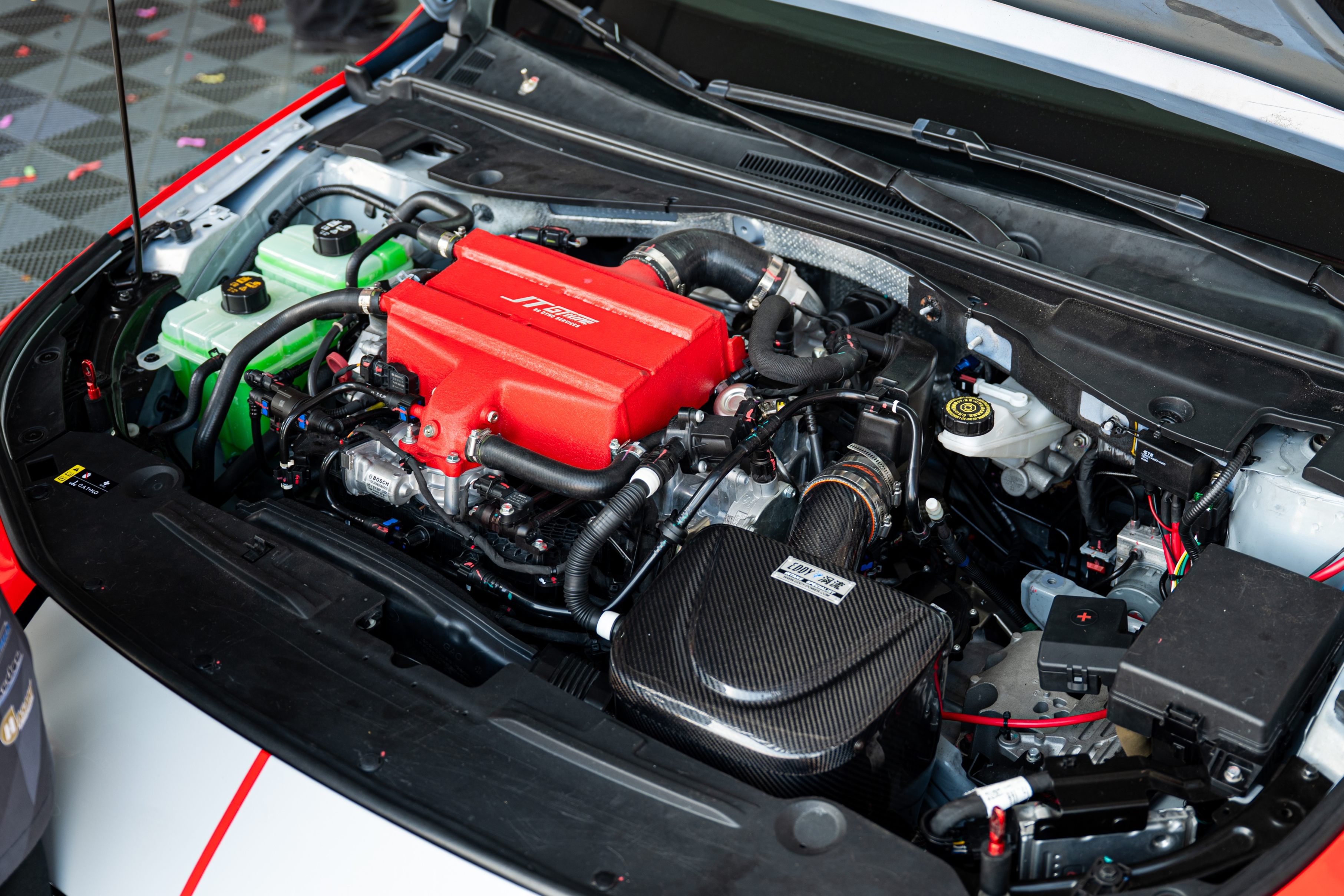 新车完整保留了原厂动力总成——2.0T发动机与8AT变速箱硬件未做改动,仅通过赛道化程序调校,使动力响应更为直接迅猛。底盘方面,在保留原厂优秀几何的基础上,换装高性能竞技绞牙避震,显著提升弯道支撑与操控响应。