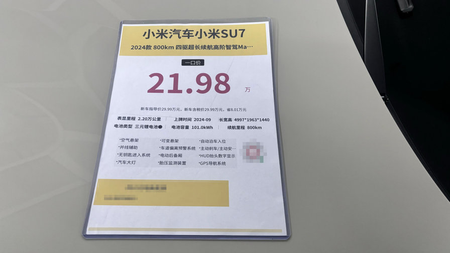 2、同配置另一台SU7 Max版,跑了2.2万公里,2024年9月上牌,现在一口价21.98万元。