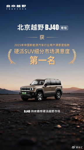 这份成功,也获得了权威品质机构的印证。在中国质量协会2025年新能源汽车用户满意度指数测评中,BJ40增程荣获硬派SUV细分市场用户满意度第一。同时,北京越野品牌也获评 “市场质量信用AAA企业”。销量与口碑的双重认可,让来自国家殿堂的荣誉,在用户端得到了扎实的回响。