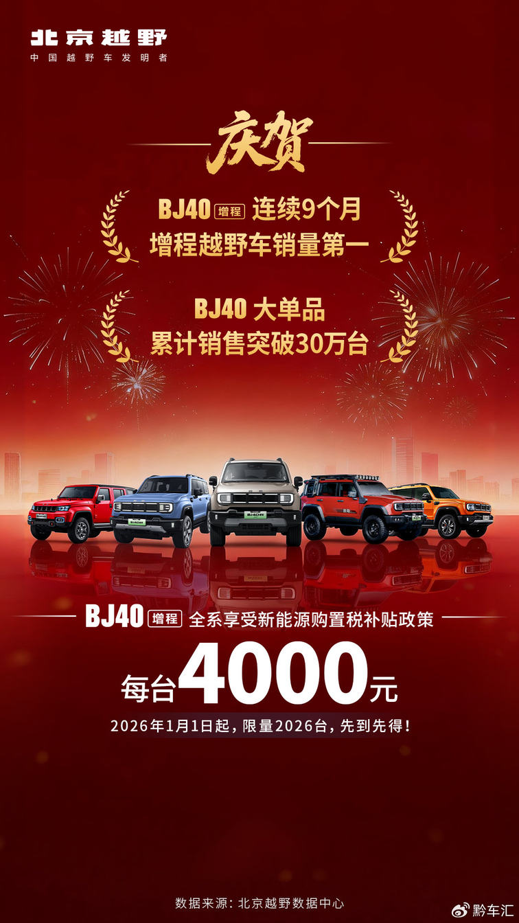 国家殿堂的认证,奠定的是权威与高度;而市场的热烈反响,则验证了其价值的真实。 实际上,十多年来,BJ40全系持续火爆,历史累计销量已突破30万台,奠定了深厚的口碑基础。而BJ40增程自2025年4月上市以来,已连续9个月稳居增程越野车市场销量榜首,展现出强劲的产品实力。