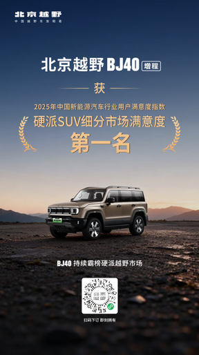 这份成功,也获得了权威品质机构的印证。在中国质量协会2025年新能源汽车用户满意度指数测评中,BJ40增程荣获硬派SUV细分市场用户满意度第一。同时,北京越野品牌也获评 “市场质量信用AAA企业”。销量与口碑的双重认可,让来自国家殿堂的荣誉,在用户端得到了扎实的回响。