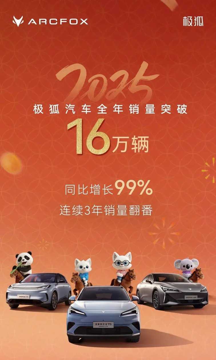 资料显示,2025年,极狐年销量超过16万辆、同比增长99%,成为年度增长最快、势头最猛的品牌之一。