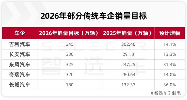 如果用一个词来形容传统车企的2026年销量目标,“稳中求进”再贴切不过。