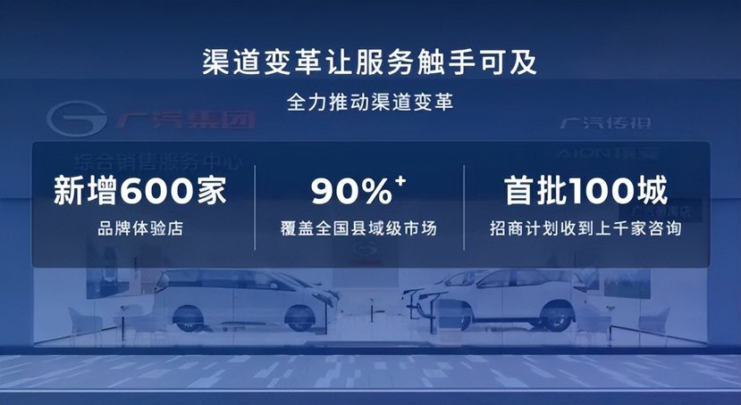 广汽预计会增加600家品牌体验店,覆盖全国90%以上的县域级市场,首批100个城市已完成招商布局。