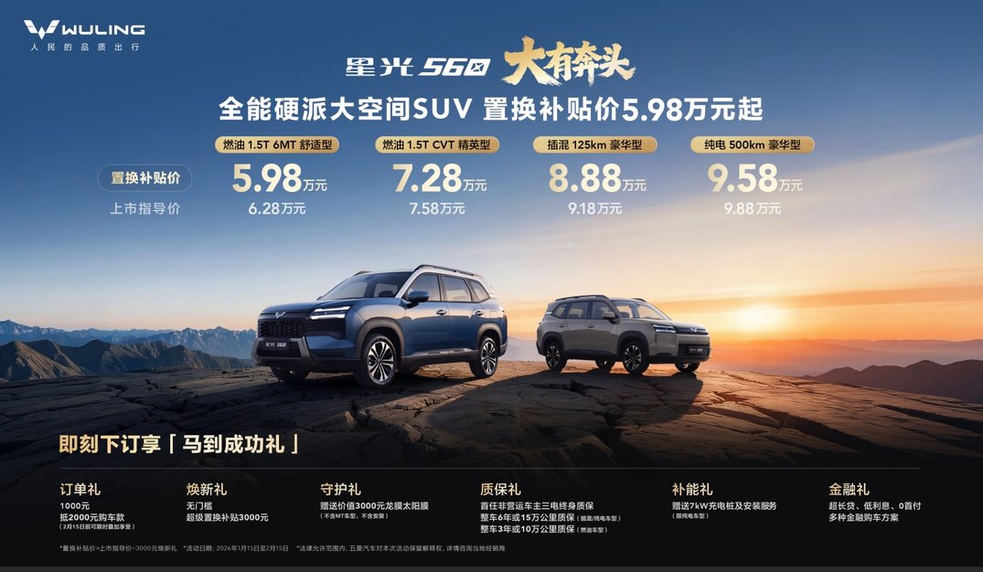 当汽车市场还在细分赛道中角逐,一款打破动力边界、重构价值标准的全能车型重磅登场。1月15日,“全能硬派大空间SUV”星光560正式上市,以5.98万元—9.58万元起的置换补贴价,推出燃油、插混、纯电三种动力形态的四款车型。