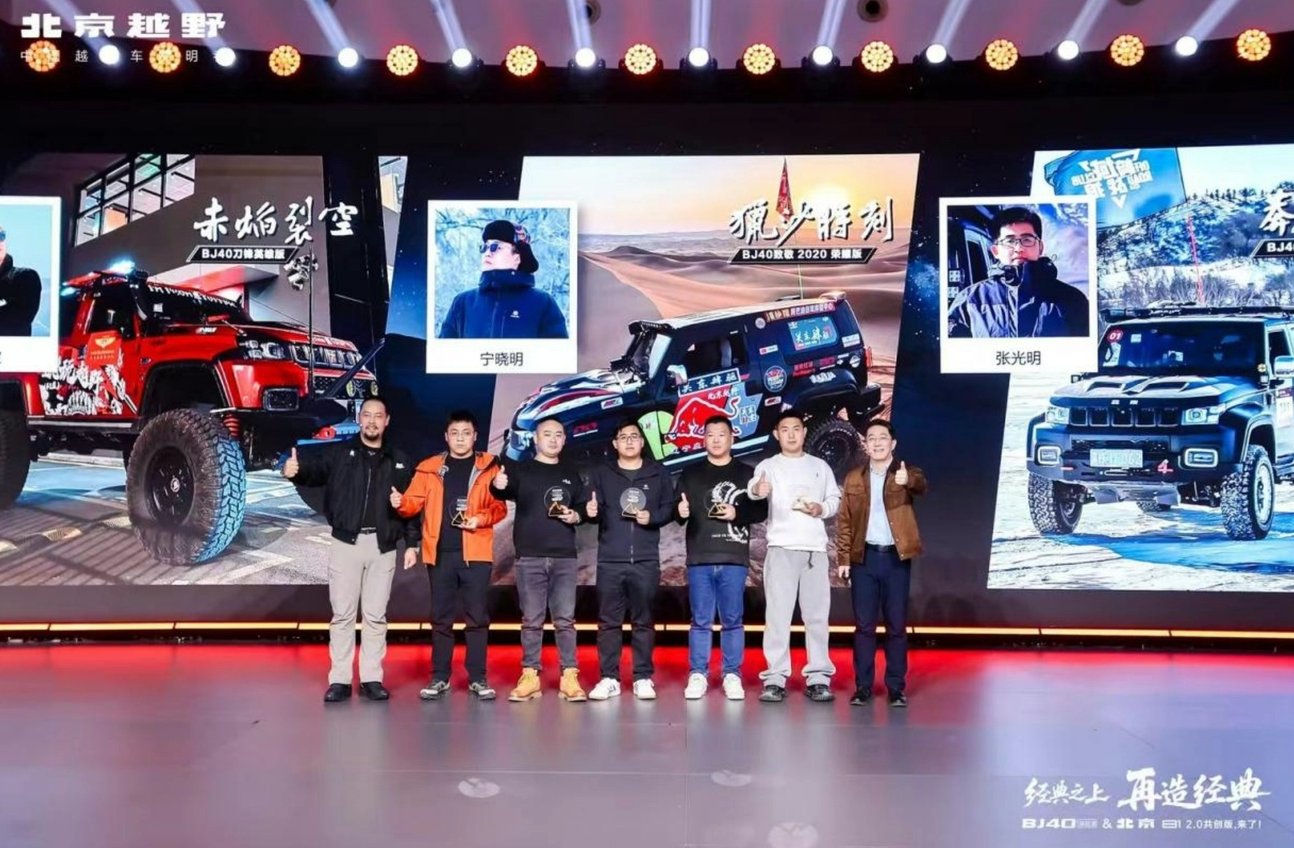 同时,“BJ40探险家改装大赛”正式启动,“BJ40改装佳作全民票选”共有10个最具代表性的作品入围用户票选环节,TOP5获奖者由王昊与晋松现场颁奖。