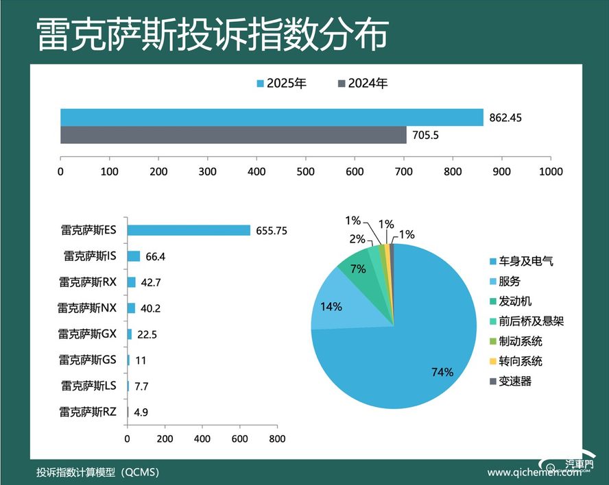 汽车质量投诉点评:雷克萨斯去年的投诉指数同比小幅上涨,该品牌的投诉指数为862.45。仪表台老化开裂是雷克萨斯登上2025年度豪华品牌投诉指数排行的核心问题。该问题集中出现在雷克萨斯ES和雷克萨斯IS两款车型。2019年前出厂的雷克萨斯老款车是仪表台老化开裂的主要车款。雷克萨斯车主反馈,车辆出现了仪表板以及车门内饰板发软发粘的问题,这一问题是雷克萨斯部分老款车的通病。目前,雷克萨斯车主们要求官方对相关部件进行修复或更换。但车主们至今未收到雷克萨斯官方的明确回复。