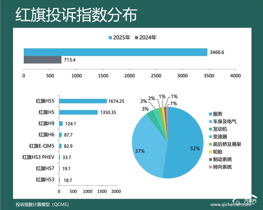 第三名:红旗 投诉指数:3468.6