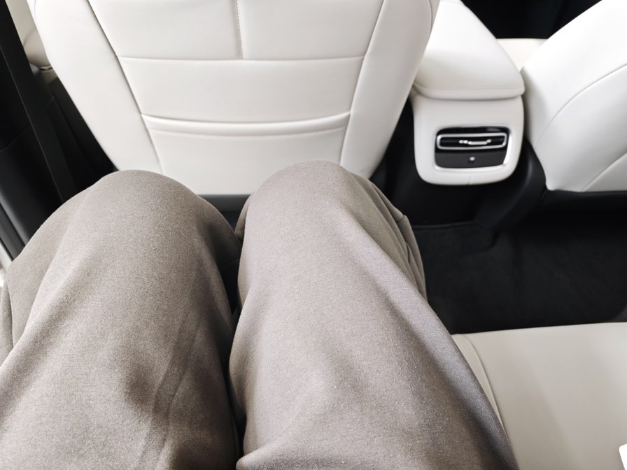 后排空间没有问题,但坐姿略有不足,具体体现在左后座椅在穿着较厚鞋子且驾驶位降低的情况下,要想把脚插入主驾座椅下方会有点勉强。
