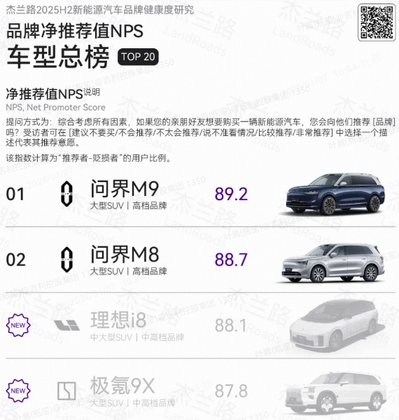 极氪9X此次在NPS表现尤其令人关注。作为一款2025年9月底才正式上市的新款车型,它只用了几个月的时间,就已跻身细分榜单NPS前三,迅速完成从“刚入场”到“被推荐”的转变,这已然证明了高端用户对其产品价值、品牌可靠性的确定判断。