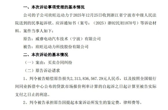 吉利旗下威睿电动一纸诉状,将欣旺达子公司告上法庭,索赔金额高达23.14亿元。这个数字几乎相当于欣旺达过去一年半的全部利润。消息一出,这家二线电池企业的股价应声暴跌。