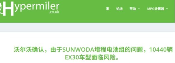 雪上加霜的是沃尔沃英国官方确认,因高压电池单元安全隐患,将召回10440辆搭载欣旺达电池的EX30车型,涉及2024-2026年全系列产品,同时紧急提示车主将电量控制在70%以下行驶。