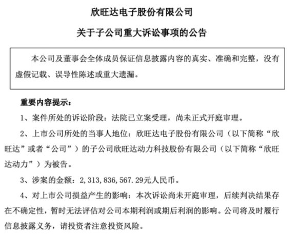 欣旺达之劫:23亿被告席,二线电池巨头如何被时代卡住喉咙?