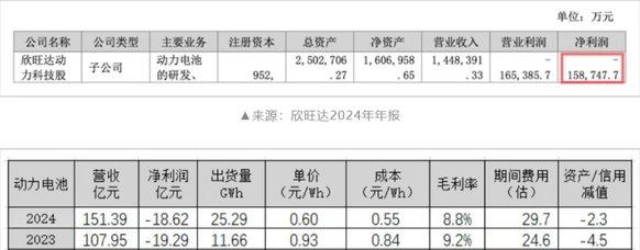 欣旺达动力(公司动力电池子公司)的财务数据揭示了问题的严重性:2024年收入超140亿元,净亏损却超过15亿元,净亏损率高达11%。这家被寄予厚望的子公司,不仅没有成为现金牛,反而在不断“吸血”。