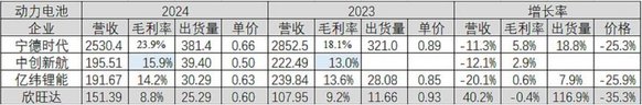 更致命的是成本差异。2024年,宁德时代动力电池毛利率约为24%,亿纬锂能为14%,而欣旺达只有不到9%。这意味着,在同样的售价下,欣旺达的利润空间被极大压缩。