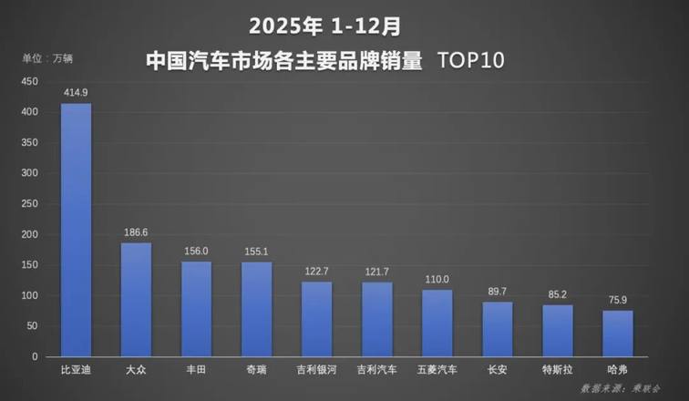 随着2025年圆满收官,中国汽车市场交出年度成绩单。《早懂车》最新获得的行业数据显示,比亚迪在12月及2025年全年中国汽车市场品牌销量、新能源销量、集团销量等多个核心维度均位列第一。并连续四年蝉联全球新能源车市场销量冠军、中国汽车市场品牌四连冠,以冠军之姿持续领跑新能源汽车市场。